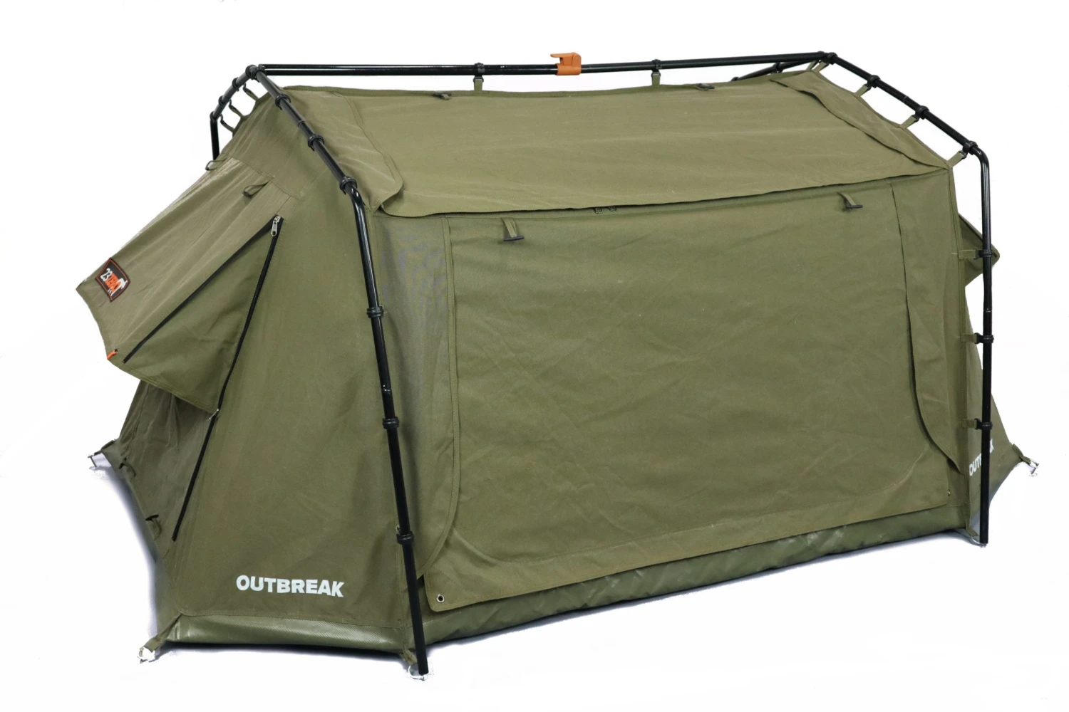Built using a 400gsm tightly woven proofed and balanced plain weave poly cotton canvas and sewn with Tex 90 poly cotton sewing thread incorporating 501 lock stitch twin needle seams, the Outbreak provides class leading strength and durability. The HF welded PVC bucket floor combined with the HF seam tape sealed seams ensure the inside of the swag remains dry offering ultimate protection and performance.