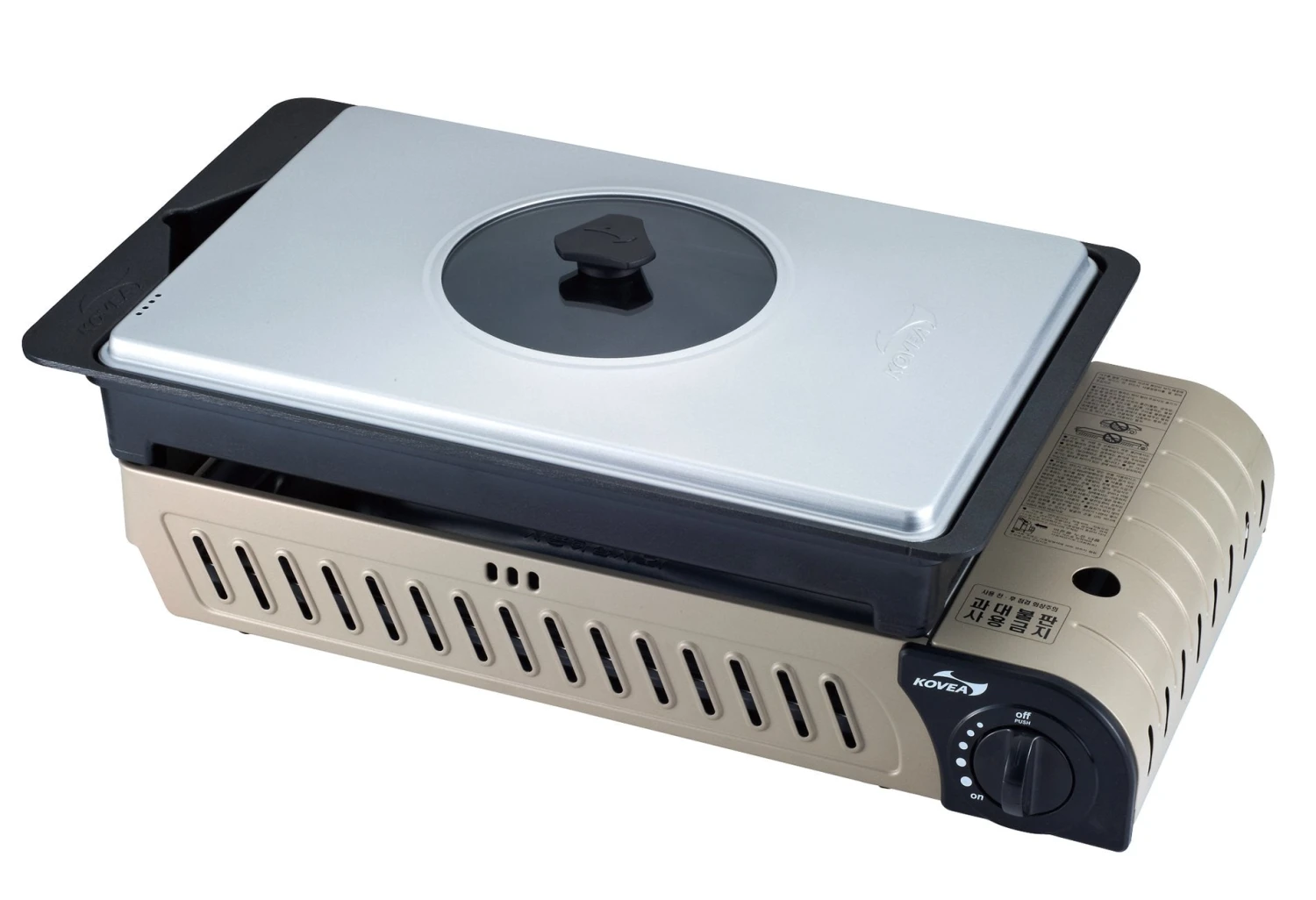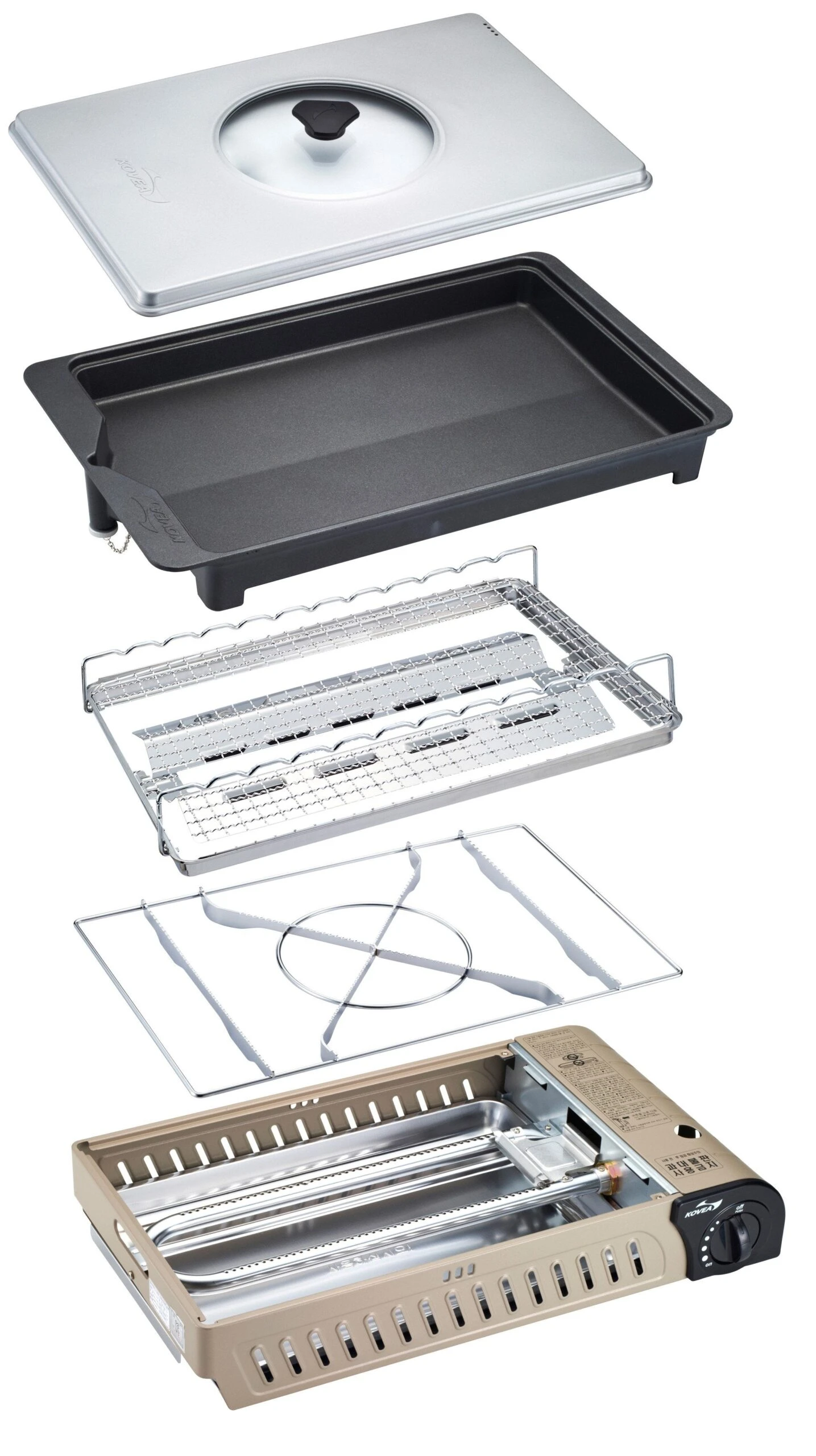 The All in One Gas BBQ Grill is the perfect companion for indoor or outdoor cooking. The unique U shaped flame head evenly distributes heat across the cooking surface. Equipped with 3 different types of cooking trays – a large pot support for traditional stove top cooking, a BBQ grill with deployable skewer supports, and a cast iron pan with a lid – this all in one cooking stove does everything, grilling, cooking stews, shabu shabu, fondu, or kabobs. It even has a removable grease tray for easy cleaning. And it’s completely self contained making it easy to deploy on any table. With this portable stove you can cook anything, anywhere.