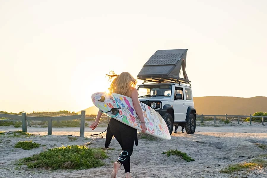 Introducing the LT- 50 lightweight tent – The best ultralight rooftop tent on the market with the same build quality as all our other products. You don’t need to be an overlander to live your best life, the LT-50 opens up a new opportunity of vehicle applications. It pops up within seconds, you can keep your bedding inside and it can carry a 30kg load up top. One of the standout features of the Alu-Cab rooftop tent is its lightweight construction and it has a nut slot lid and base frame for easy mounting of accessories such as awnings, shower cubes, ladder brackets, spades etc. The tent is made from lightweight, high-strength aluminum, which makes it easy to install and transport. The tent also features a compact, streamlined design that minimizes wind resistance while driving.
