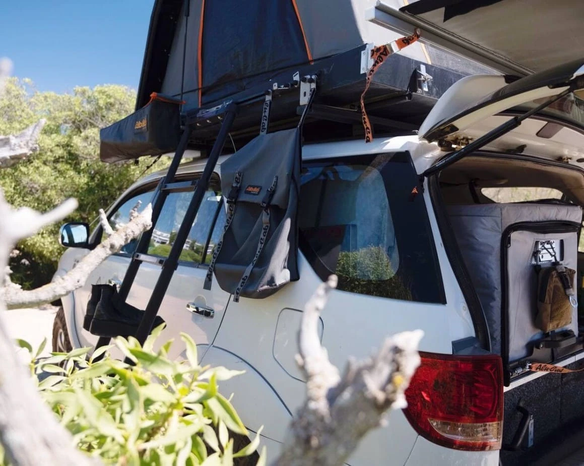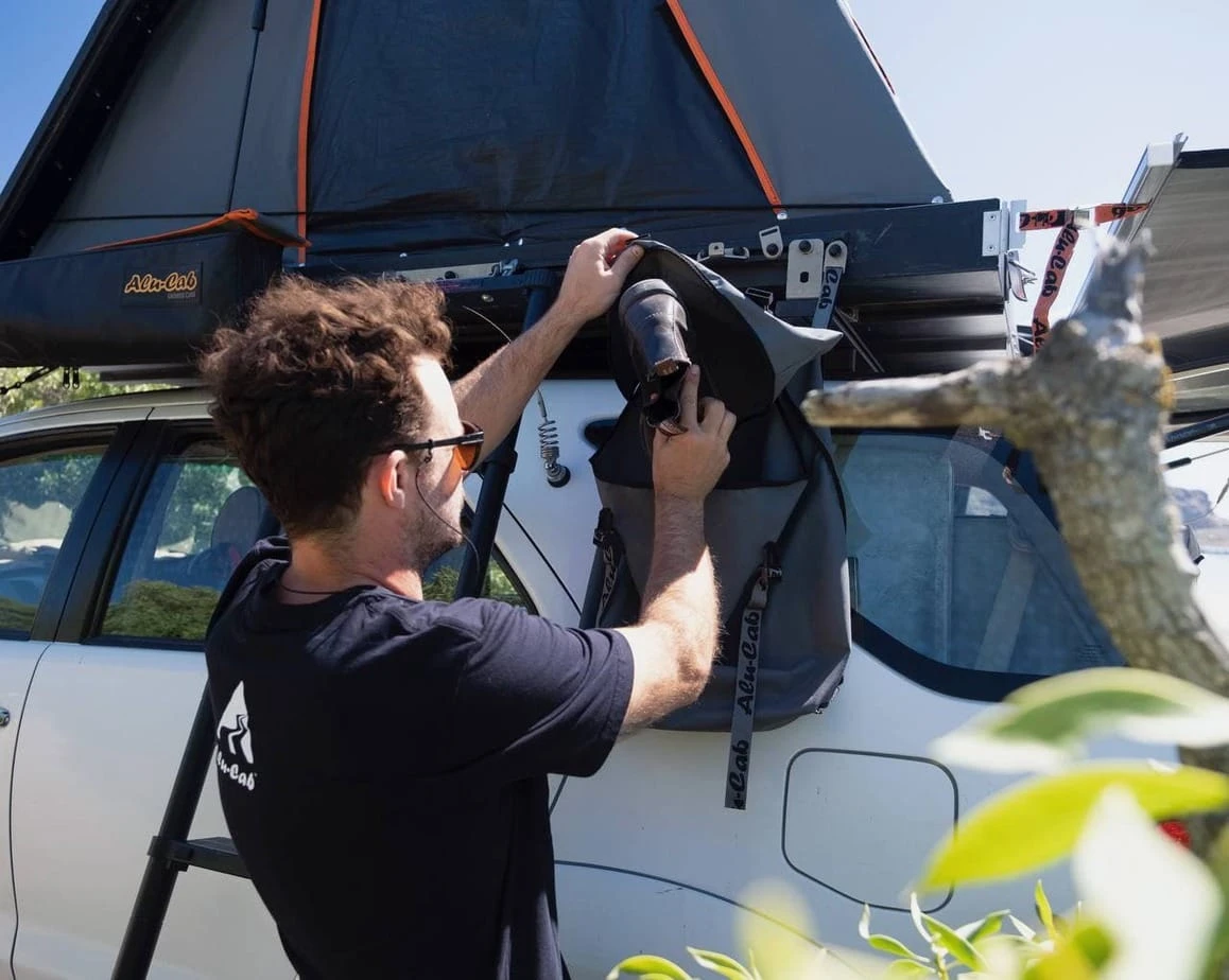 With Roof Top Tent living there is always the challenge of where to put your shoes when going to bed. The new Alu-Cab Mud bag keeps muddy footwear hanging just outside your tent but within reach for a quick grab-and-go.