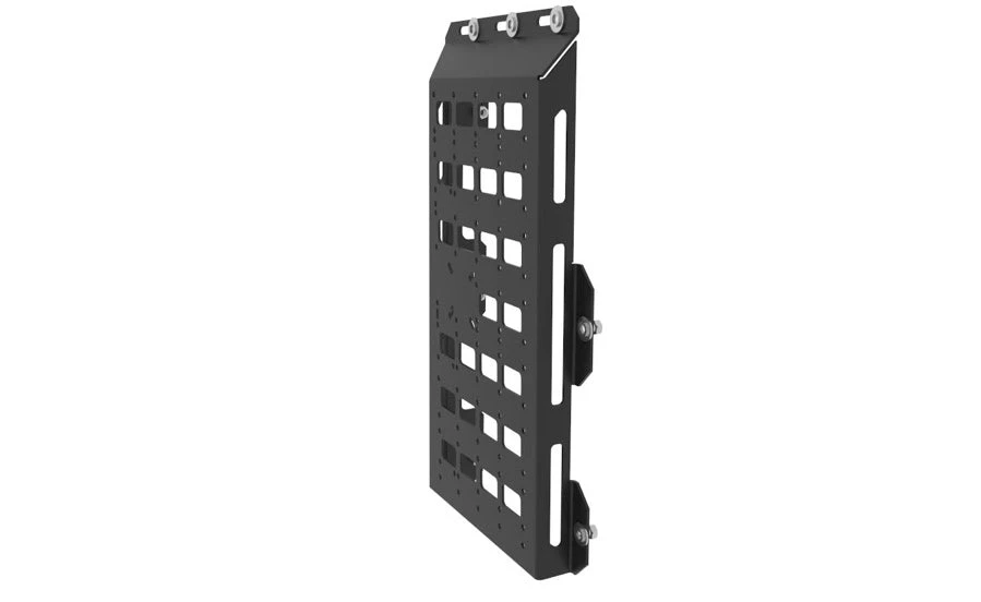 This is an accessory mounting plate we add to the rear of most of our campers or canopy campers. The idea behind the plate is that it allows equipment to be mounted to the rear of the Camper without drilling into the camper itself. One can also strap bags etc, as one requires when needed.