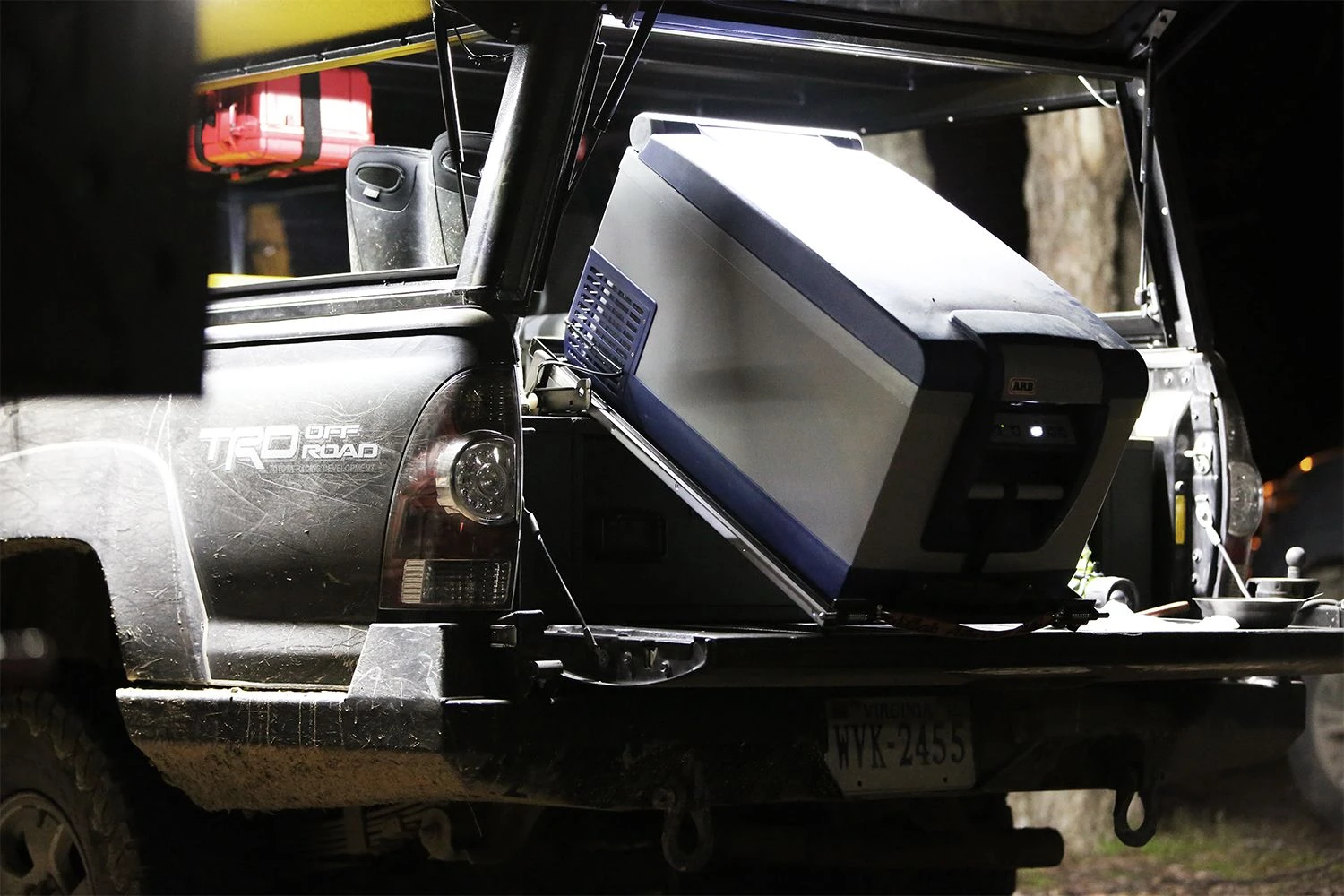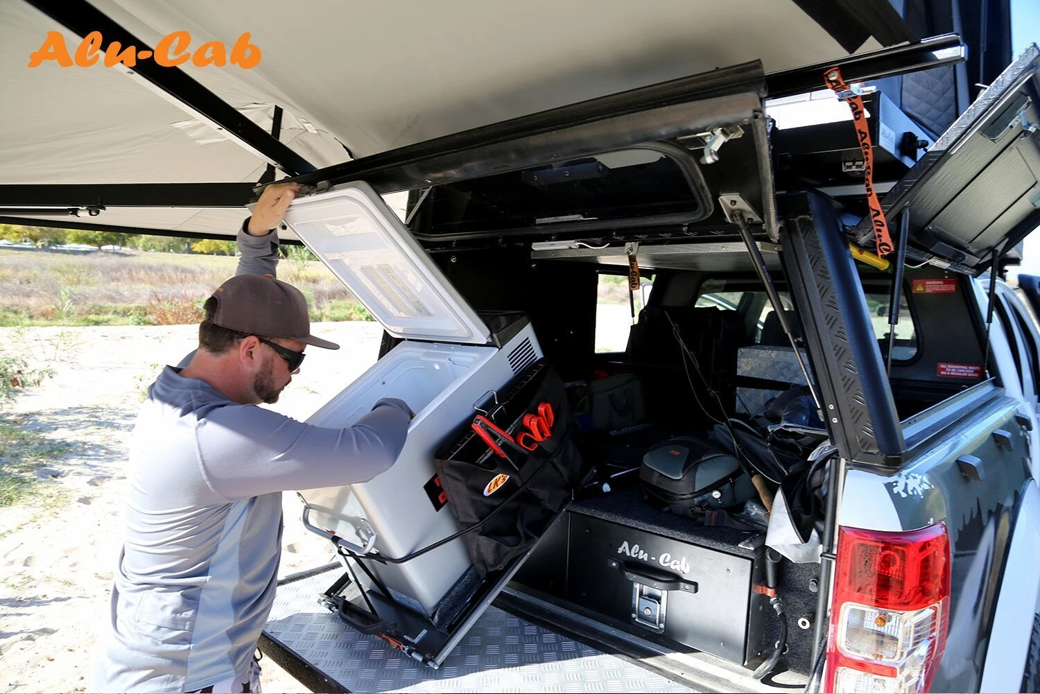 The Alu-Cab tilting fridge slide is a convenient fridge slide that allows you to safely mount your fridge in confined areas. The drop down fridge slide allows you to pull your fridge out of the vehicle and tilt it down for convenience.