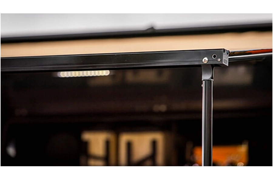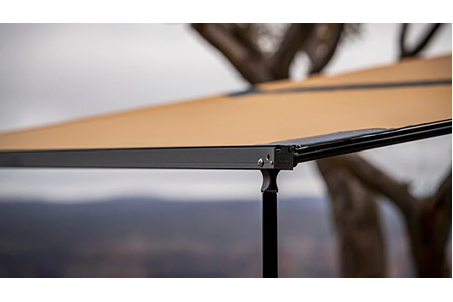 The ARB Aluminum Awning just got even better. Introducing the new ARB Black Edition Aluminum Awning with LED light strip. ARB has encased all the best parts of the current awning into an 8.2 x 8.2ft glass black, powder-coated aluminum housing. Its shock-cord-loaded opening doors are easy to use and help keep the housing from rubbing on the canvas awning when deployed. UV-treated marine grade shock cords keep the unit closed, removing all use of zippers. Stylish and practical, the ARB aluminum awning looks fantastic and sets up in minutes.