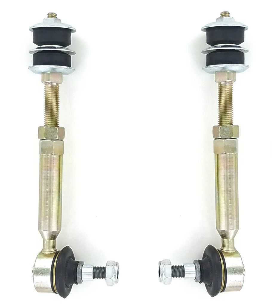 These are adjustable sway bar extensions to suit 2″ to 4″ of lift, allowing your sway bar to work properly and reset back to it’s factory riding angle on the road. Adjust the rod length according to your lift height, and so that the sway bar is riding as close to a factory position as possible. The base setting should be to add half of your lifted height to the stock length. Take new links, make them the same length as stock, then add exactly half of the lifted lift height amount to them, and check for clearances. If they’re set too long, they will contact the trailing arm. Gold zinc plated, high quality OE style ball end joints, sealed for long life, this kit includes all that you will need.