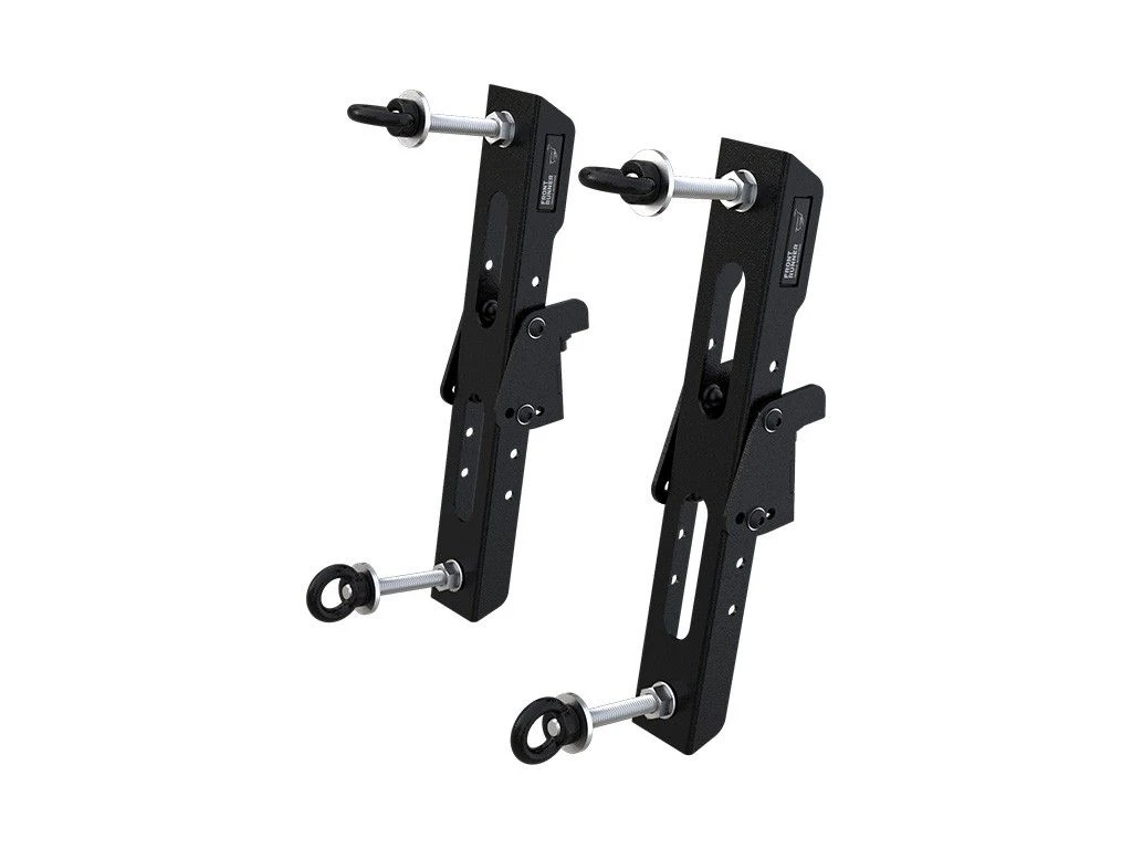 These off-road tough articulating brackets mount MaxTrax, TRED pro and other popular rescue devices with similar hole spacing off the side of the Front Runner Slimline II rack.
