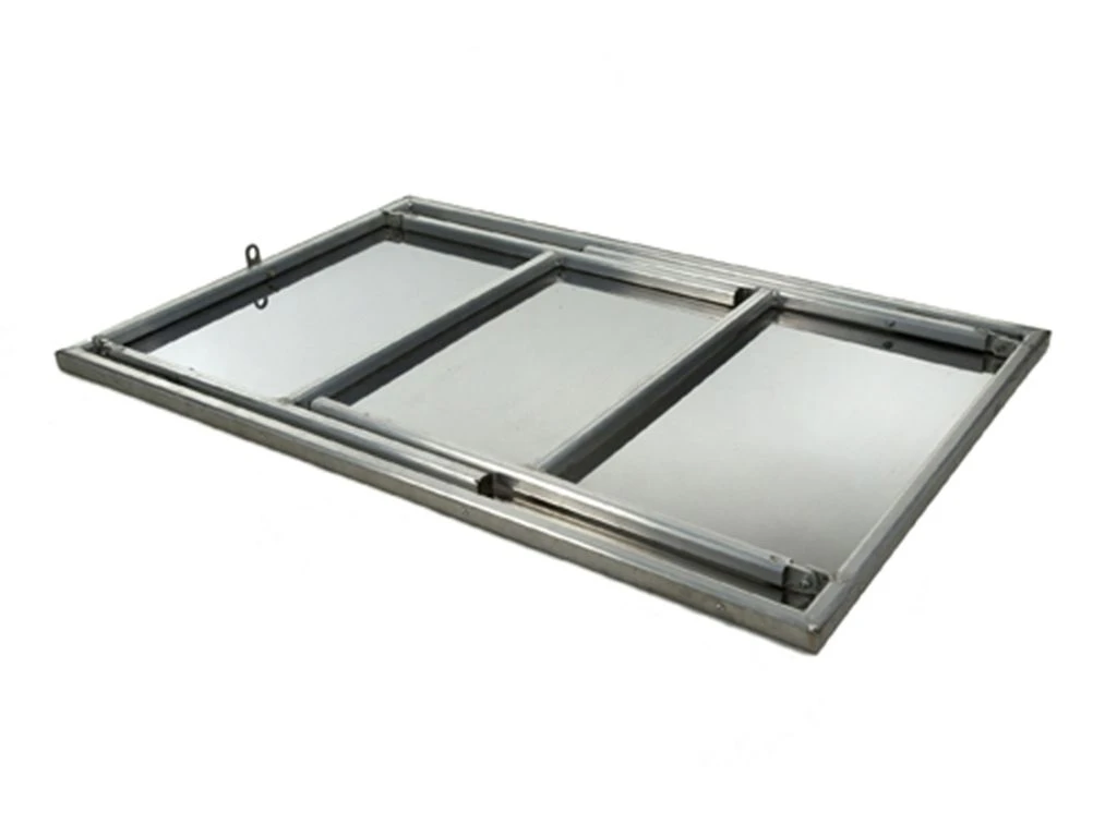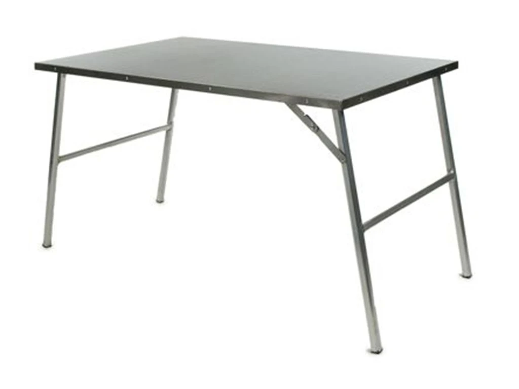 This lightweight and sturdy stainless steel table features aluminum locking legs and is full sized for eating, food prep and serving. Can be stored UNDERNEATH most full sized Front Runner Slimline II Roof Racks.