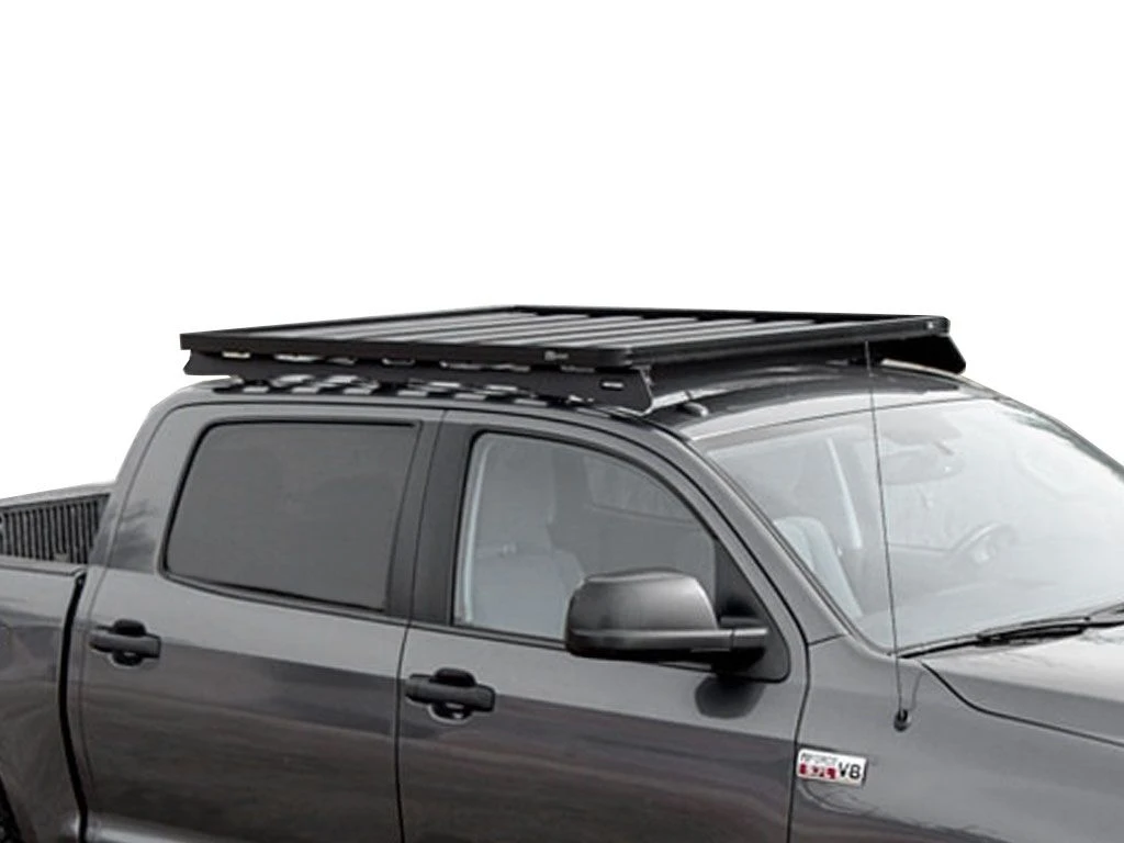 This 1560mm/61.4″ long full-size Slimline II cargo roof rack kit contains the Slimline II Tray, Wind Deflector and 2 Low Profile Foot Rails to mount the Slimline II Tray to your Toyota Tundra Crew Max. Drilling is required for installation.