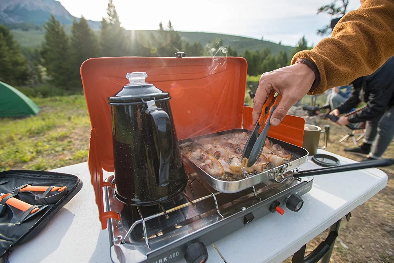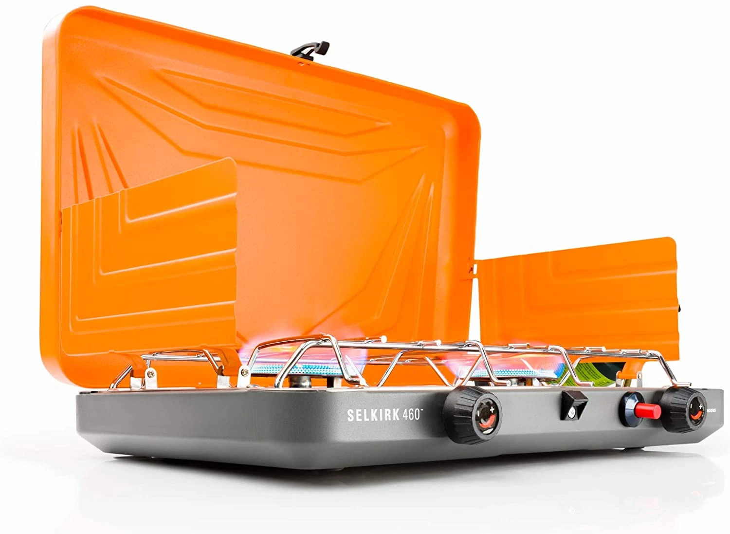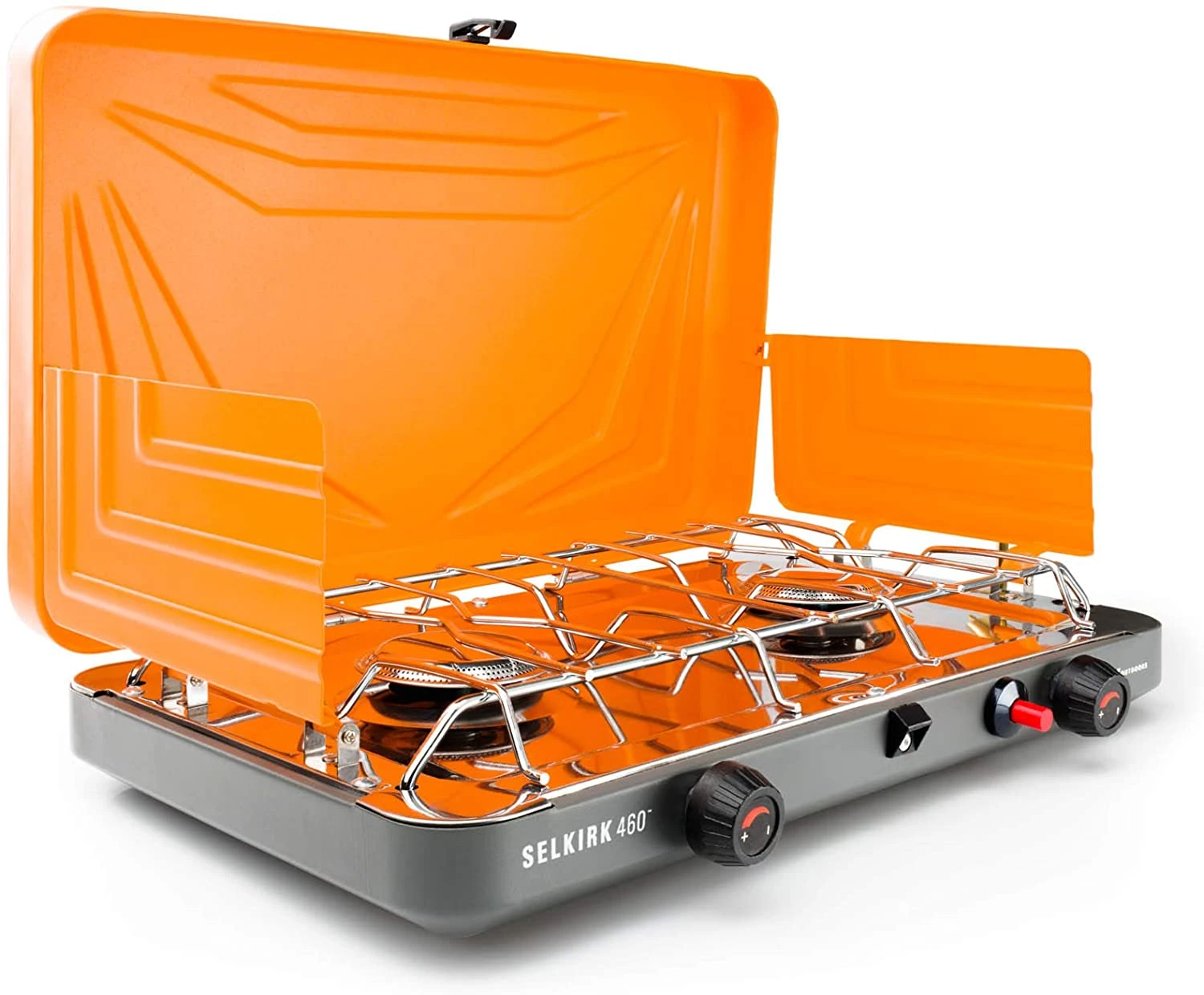 They say you can “go big or go home” and we bet you can guess where our vote lies. After starting small with our incredibly-compact, amazingly-efficient backpacking stoves, we thought that it was high time we made something to satisfy those families and groups of friends whose time we love sharing in the outdoors. Built around twin 10,000 BTU/h burners with precise, individual controls for everything from simmering to speedy boiling. Our simple, push-button, piezo ignition system and built-in carrying handle designed for both easy-transport and singe-free lighting.We’ve made a stove that was designed to really cook. The Selkirk 460 Camp Stove was made to last too with a powder-coated steel exterior and wraparound windscreens to keep the elements at bay while the stainless steel and nickel-chrome cooking surfaces make clean-up easy after even the biggest meals.