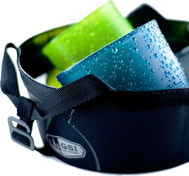 Four-person system includes: 3L pot, 2L pot, 9″ fry pan, strainer lid, four 14oz mugs with insulated sleeves and sip through lids, four 14oz bowls, four 7.5″ plates, folding pot gripper, welded storage bag/sink