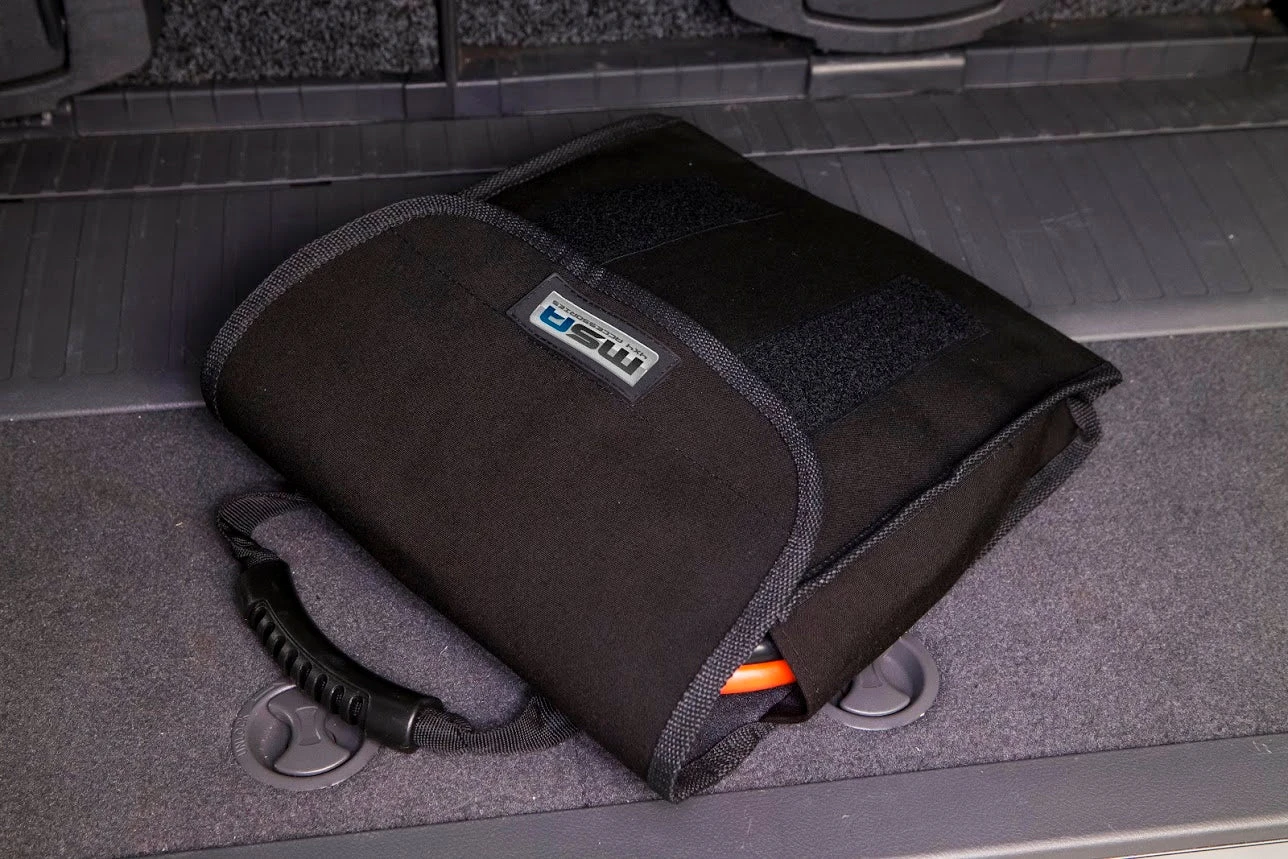 The 4WD Gear Bags feature a moulded rubber carry handle and two Velcro strips to keep the bag securely closed. These are a fantastic, versatile bag designed to hold jumper cables, snatch straps, recovery gear and more.