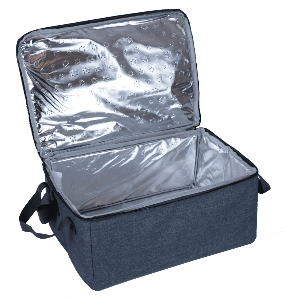 The Nomad Thermal Bag is lined with an insulating sheet finished with a food grade foil. It is intended as a food bag, but due to the interior foil lining, you can also use it for anything that may require to wipe the interior of the bag clean. This bag also comes with a shoulder strap, so it can be used as a picnic bag or to fetch supplies from the local market. It can also be used as a fridge bag with ice packs.