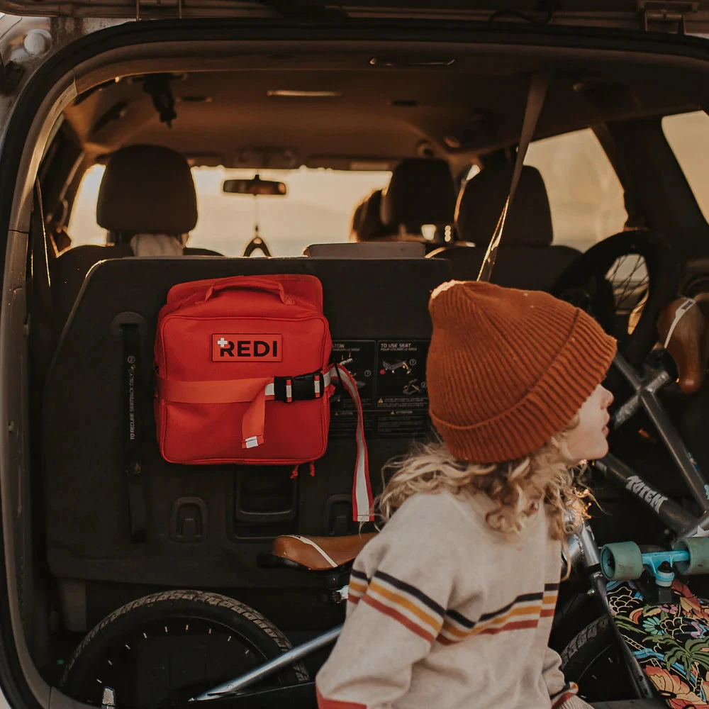 A one-of-a-kind kit designed specifically for your vehicle. Includes essential items to keep you and others ready for the most common setbacks faced outside your home. It feels good to be Redi.