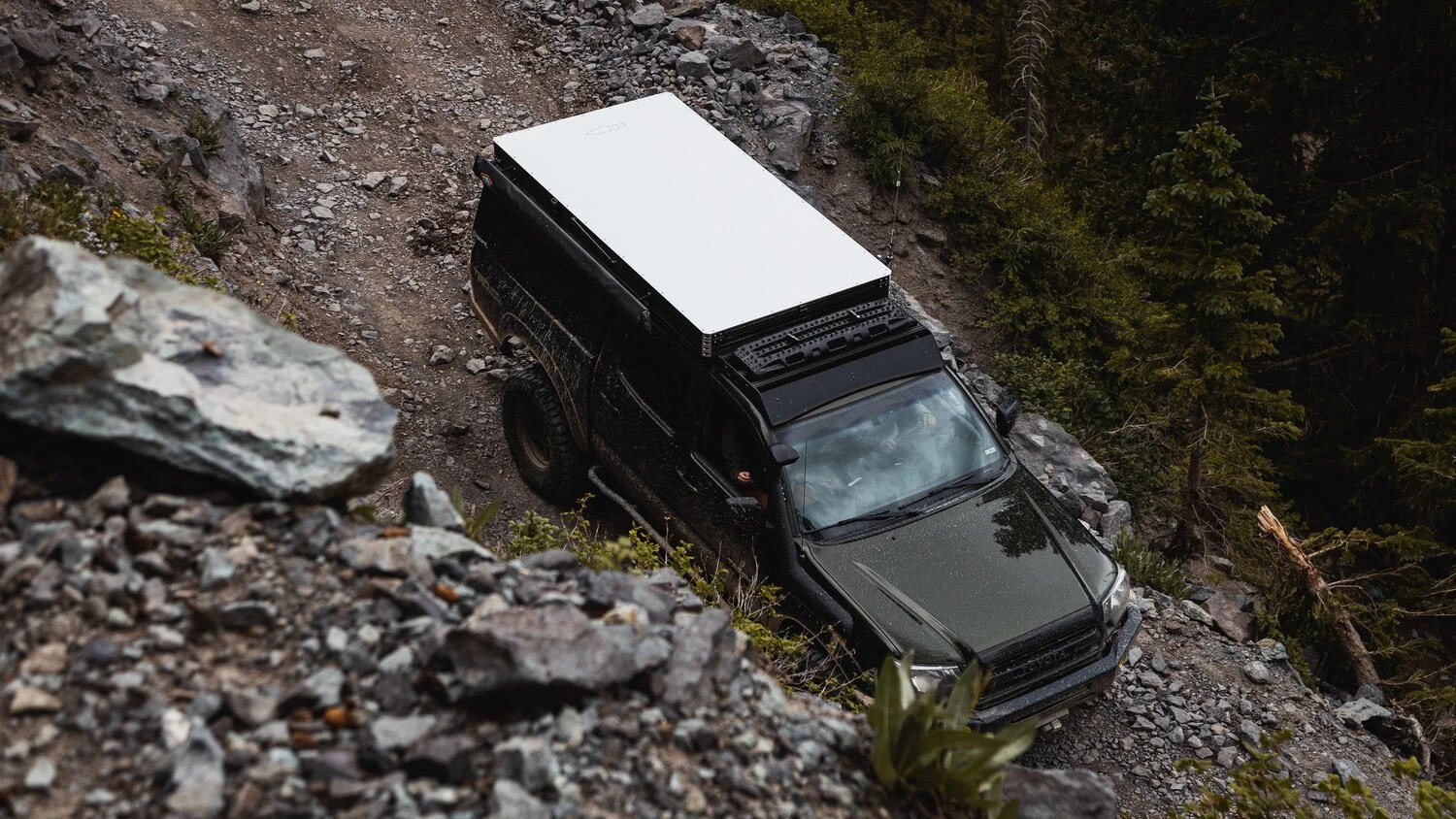 This rack provides you with 3-5 crossbars*, two 1/4” mounting feet that utilize the front and middle factory roof mounts, and the choice between our half and full fairings. It’s the perfect place for some extra storage, a solar panel, or traction boards.