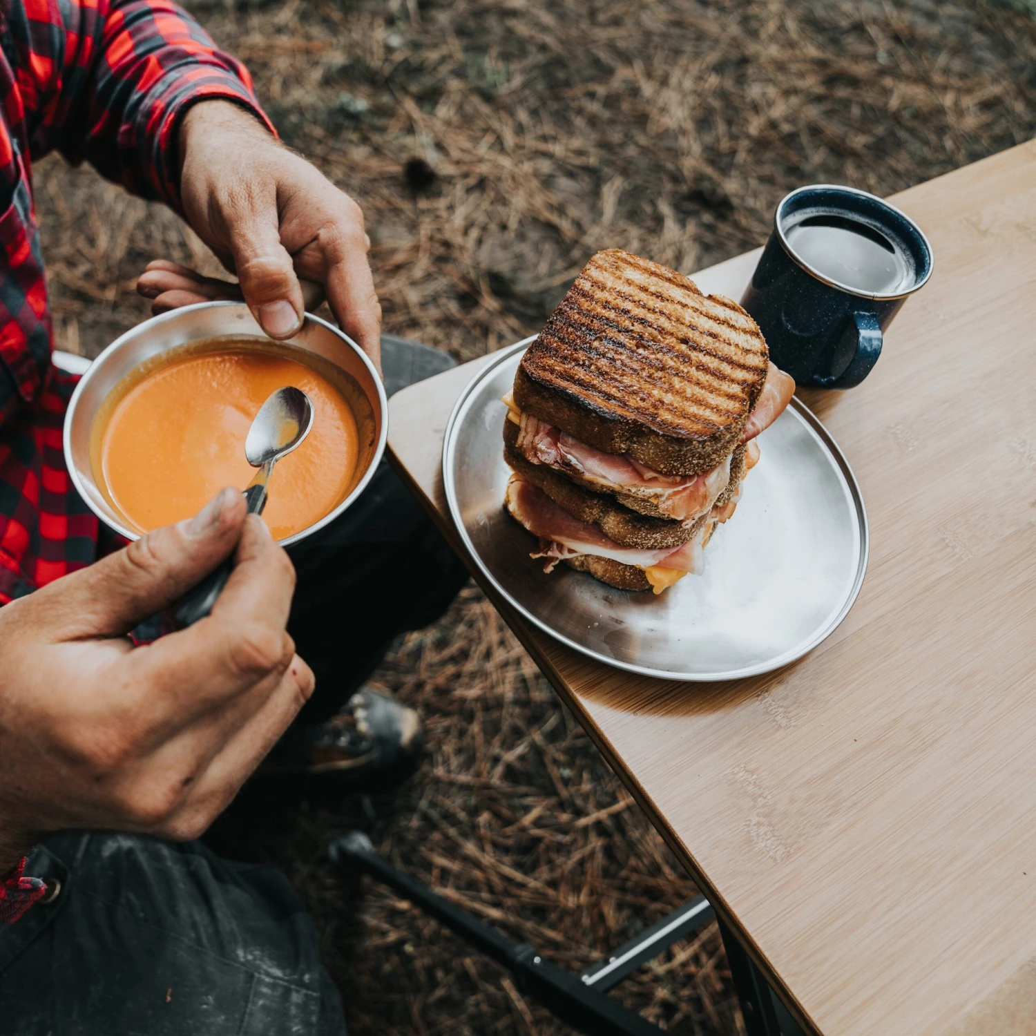 This Stainless Steel dish set comes with five differnet sizes of dishes that can nest and store in a mesh carry bag. Food Grade Stainless is durable and looks great.