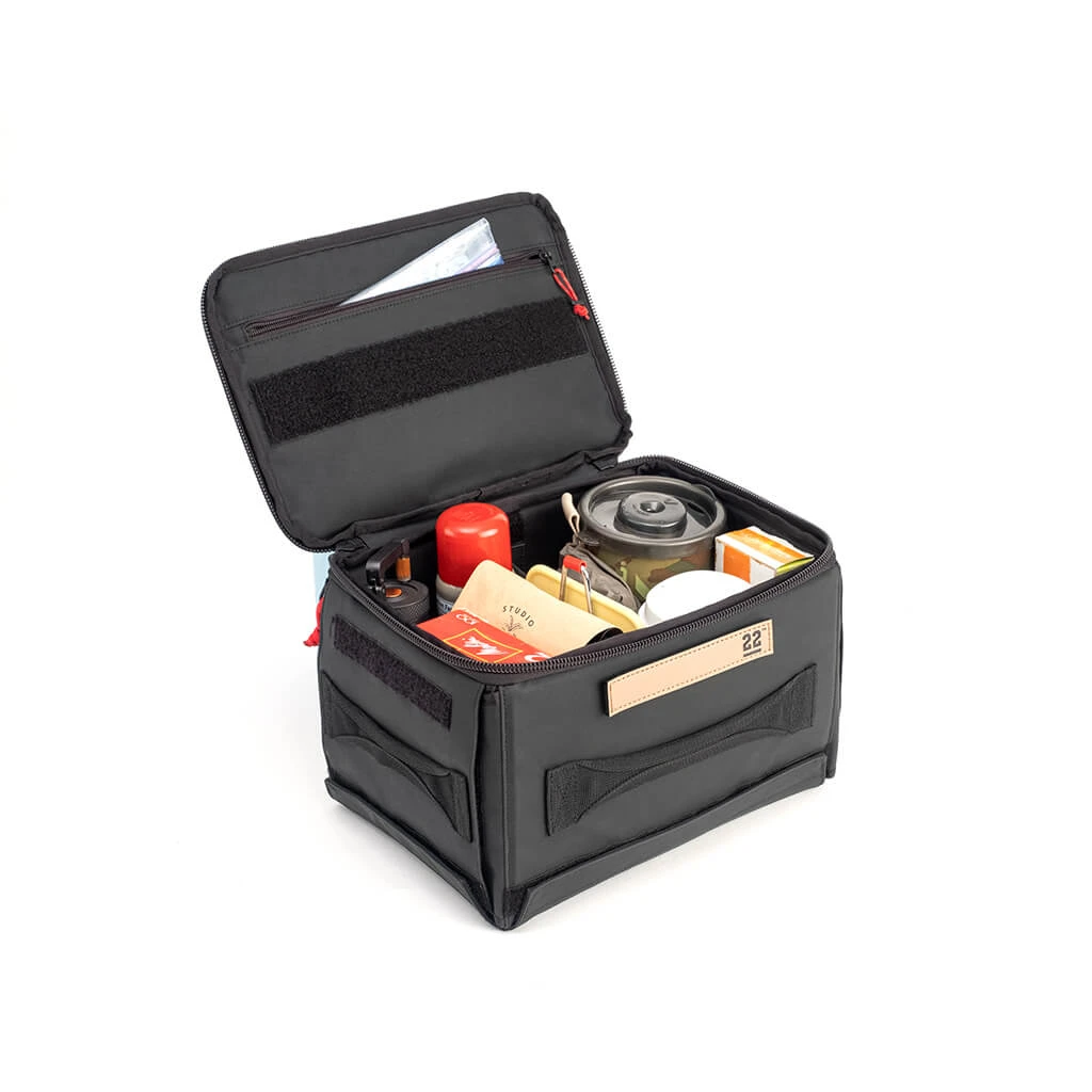 The internal lid pocket and loop strips on the lid and sidewalls really make this a versatile storage solution. Storing a Stingray inside a rigid box is the perfect way to easily move your gear around camp without having to remove your rigid box or lug it around.