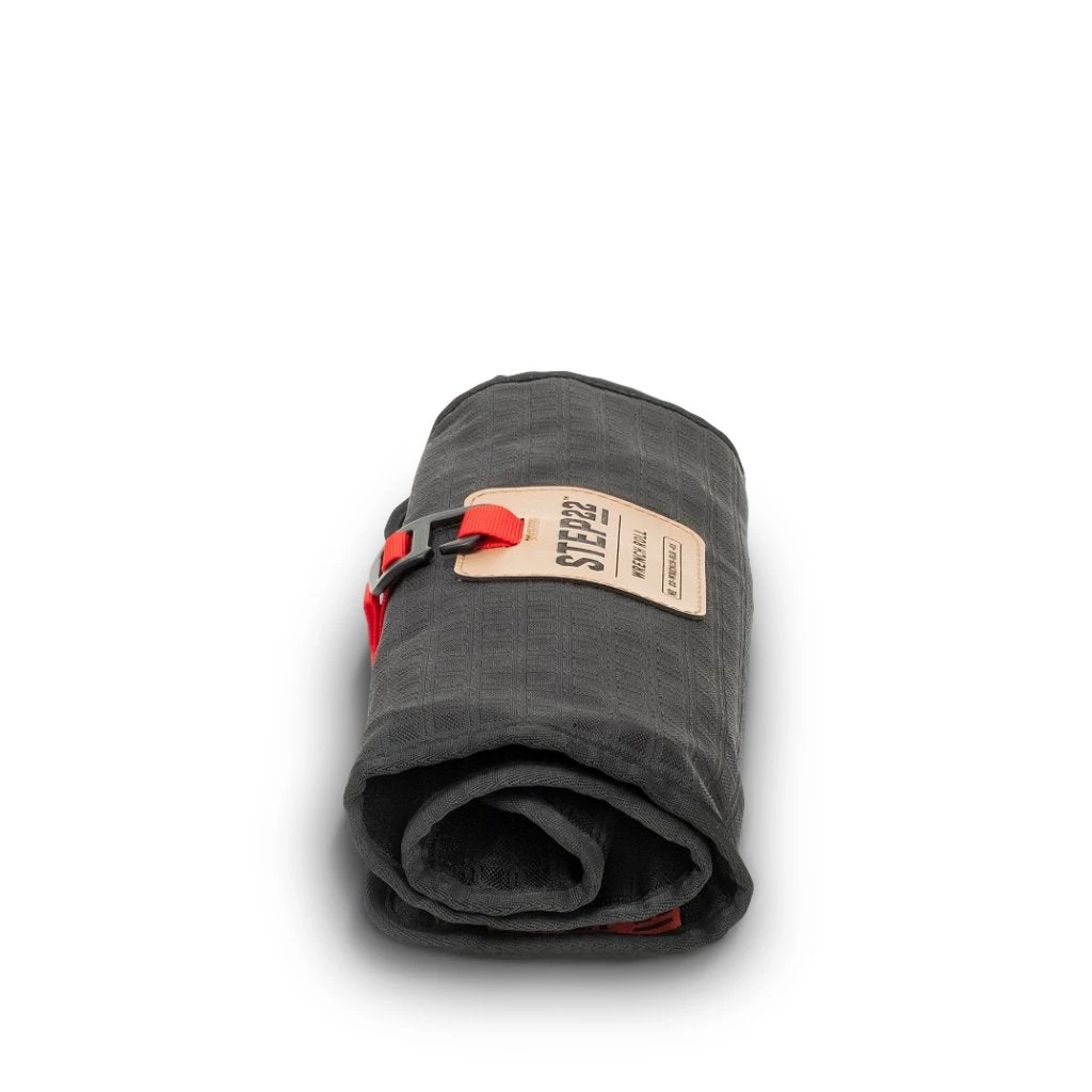 Get organized with a STEP 22 Wrench Roll. This 17 slot roll features our STEP 22 TreadWeave Nylon and a bright red closure strap with a metal adjustable tension hook. 12 main slots in varying widths and heights are perfect for your collection of wrenches or similar sized tools. 5 reverse slots along the bottom edge are perfect for housing hex keys and other smaller items. When it is rolled up, you’ll find a strip of hook Velcro along the back side for easy mounting to any number of modular storage hook/loop systems. We also include a strip of loop to protect the hook when not in use.