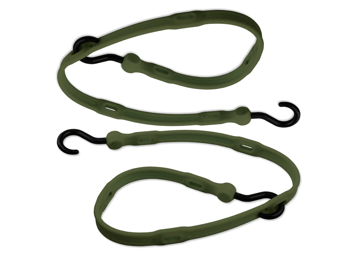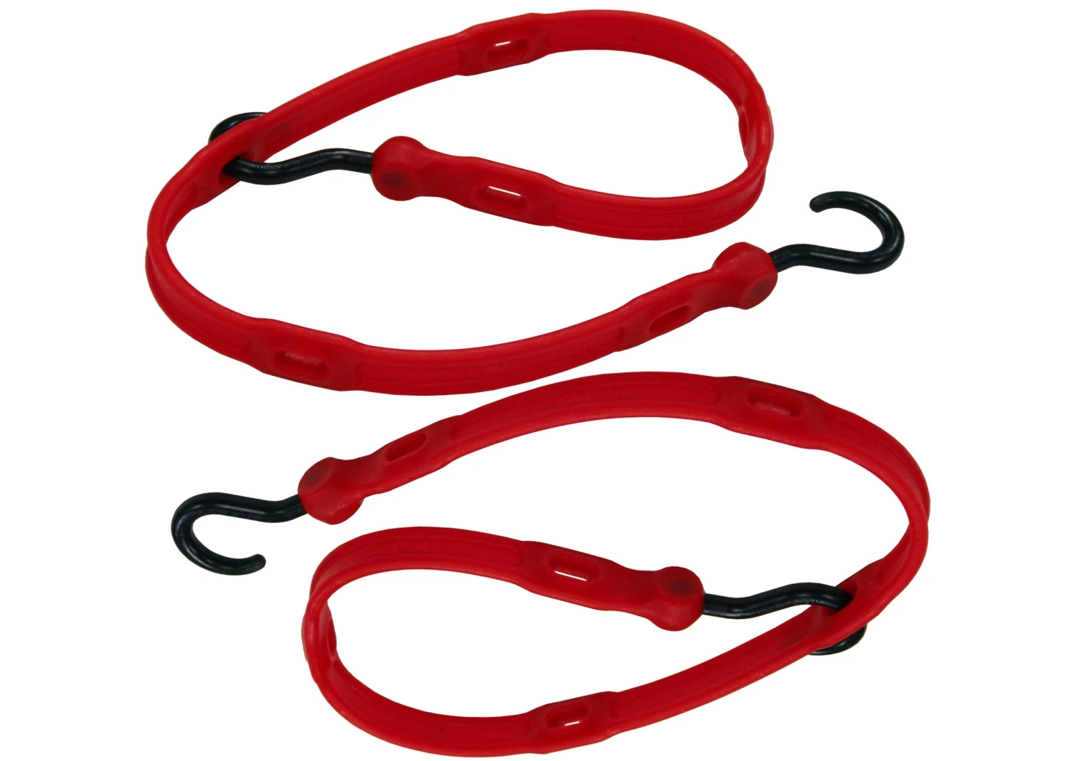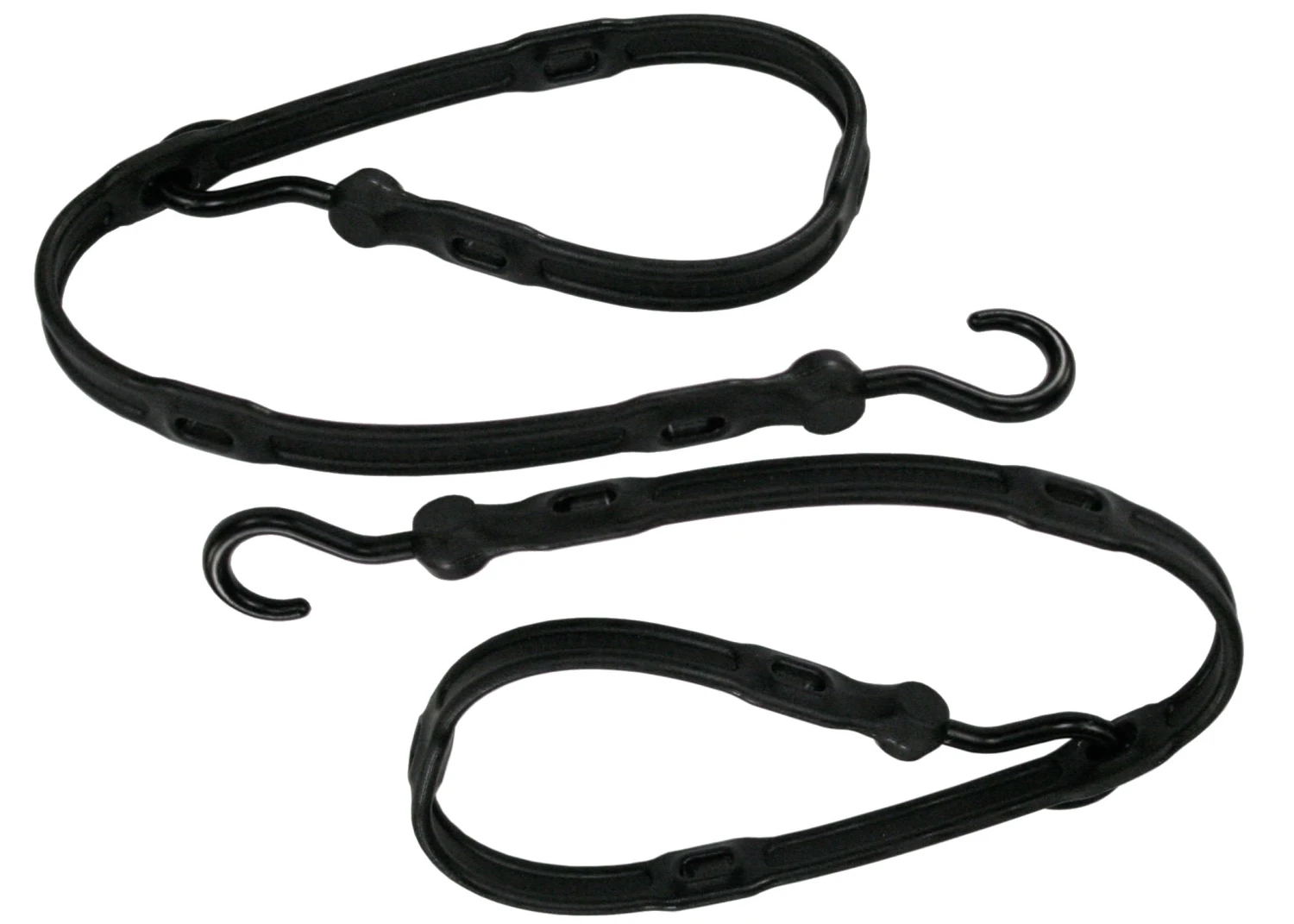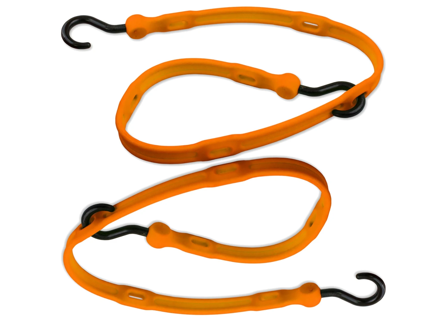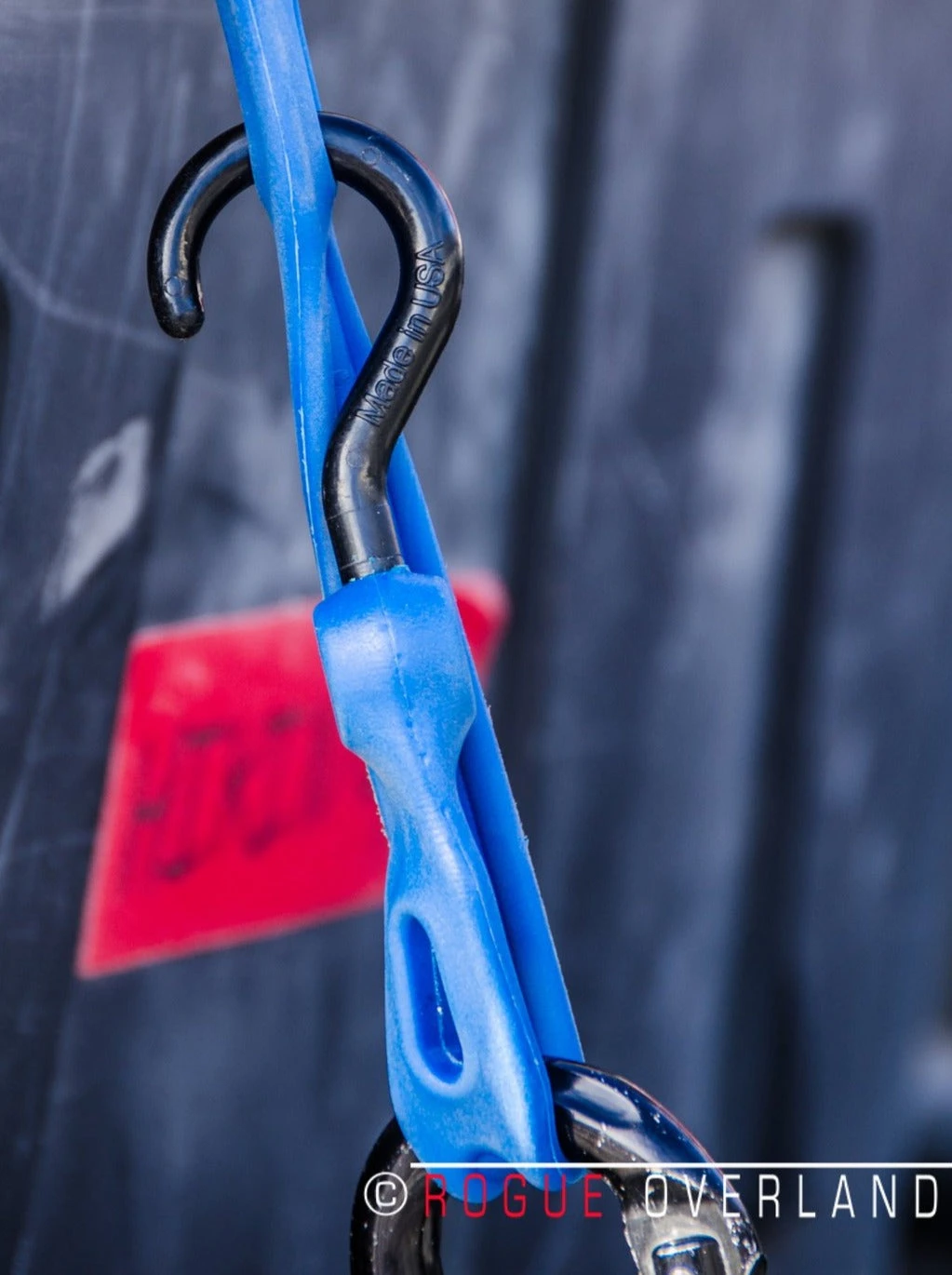 The 36” Adjust-A-Strap Bungee Strap is the most universal bungee strap in the world and now comes in a 4 Pack. This bungee features 2 Integrated Nylon Hook that are Glass Reinforced won’t scratch or gouge paint or surfaces and 6 reinforced holes evenly spaced down the bungee strap. From the garage, to the trash can lid, organizing hoses or pipes, truck bed, camper, tent, motorcycle, UTV or ATV this is the most universal 6 in 1 Bungee Straps you will ever come across. All of our bungee cords can stretch 2x their original length.
