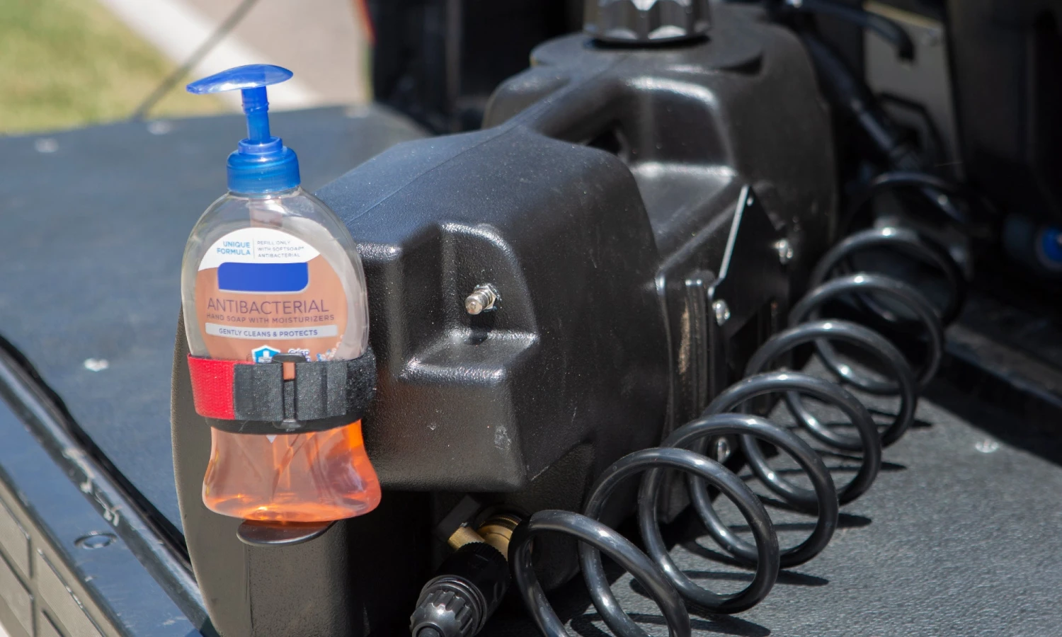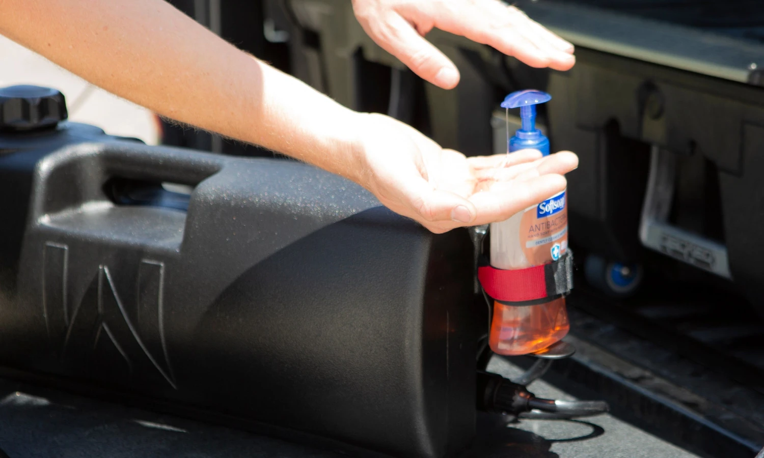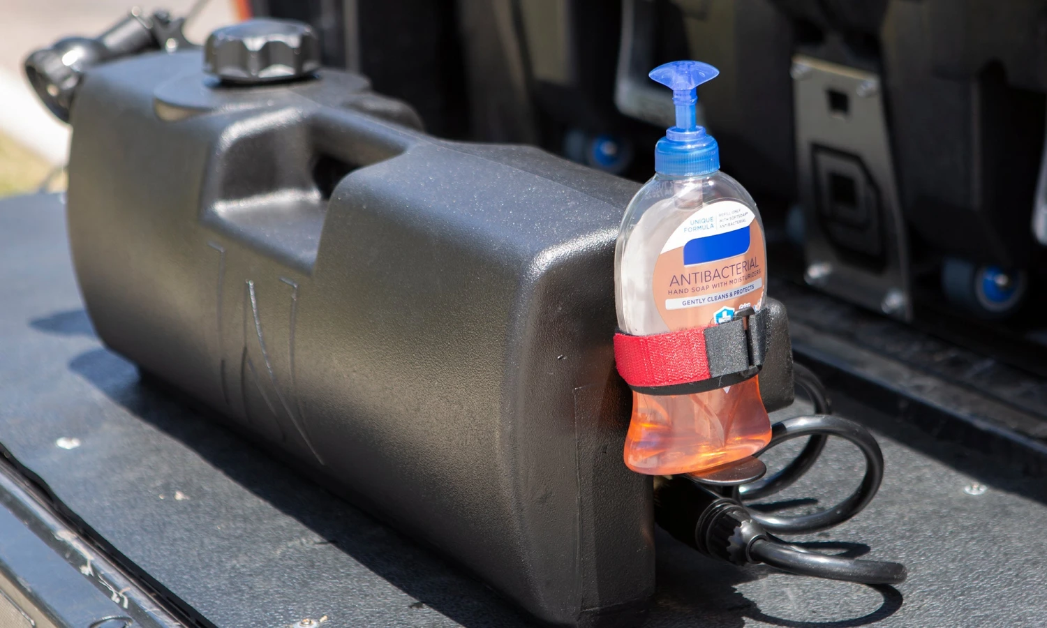 Meet WaterPORT’s newest attachment, the Soap Holder. Our engineered Stainless steel L-bracket allows you to carry most sizes of soap bottles wherever your Day Tank or GoSpout may take you. Simply set the soap bottle on the foot of the L-bracket and securely fasten it using the included Velcro strap. You now have a sanitary wash station that allows you to keep you and your family clean on any adventure.